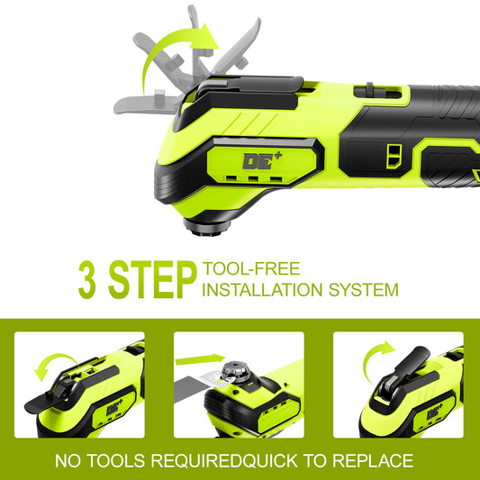 Cordless Oscillating Tool for Dewalt 20V Battery, 6 Variable Speed&3° Oscillation Angle Multi-Tool, 23PCS Tool Kit with Quick-Lock accessory change for Scraping, Sanding, Cutting Wood(Tool Only)