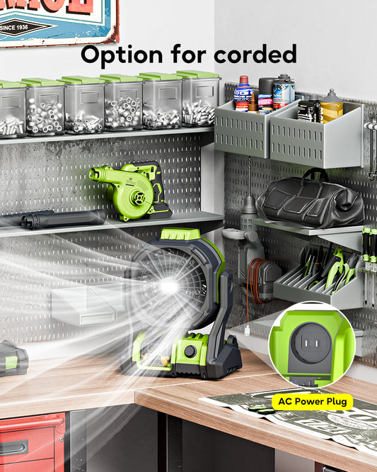 Battery Powered Fan, for DeWalt 20V Max Battery, Air Circulator Cordless, AC Corded Option, with LED Lights, for Household Ventilation Jobsite Construction Camping Workshop (Bare Tool Only)