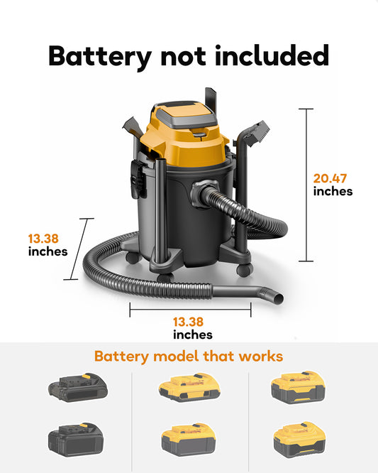 Cordless Shop Vacuum Wet/Dry, for DeWalt 20V Max Battery, 5.2-Gallon Battery Powered Vacuum Cleaner, Mustard, with Hose Nozzles HEPA Filters Wheels (Bare Tool ONLY)
